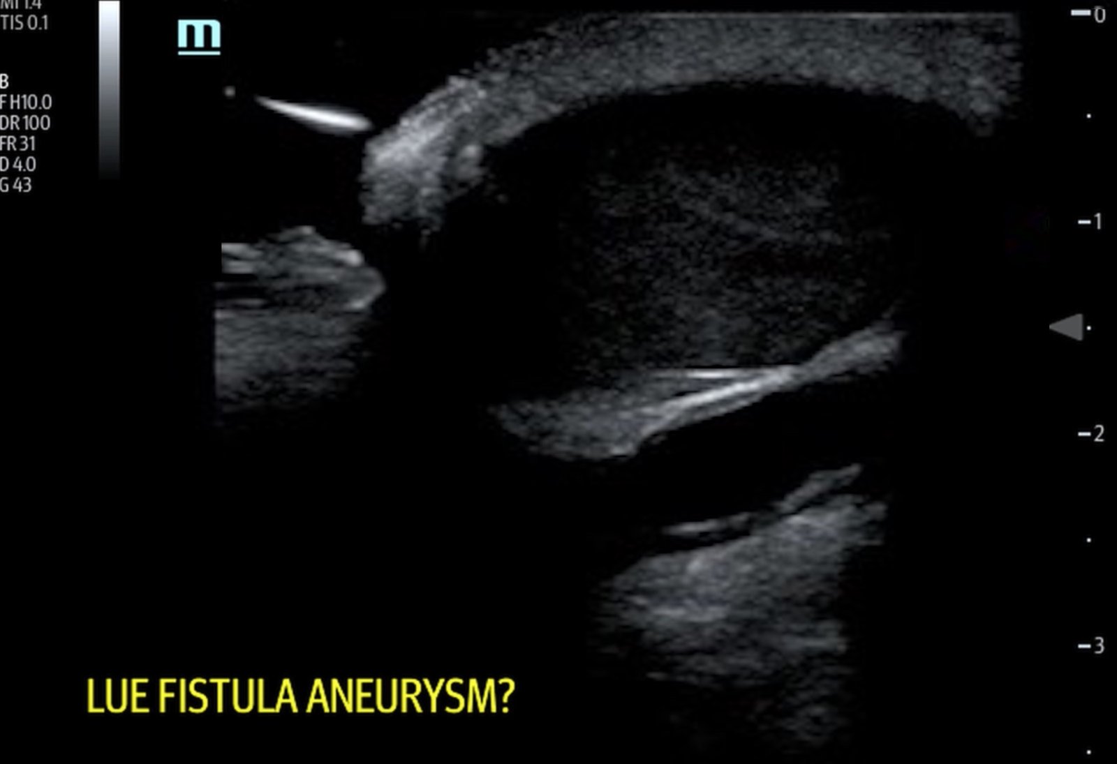 Key points that guide the management of this case are the identification of changes overlying the fistula in the acute setting, prompting the use of bedside ultrasound, and necessitating vascular consultation. Any mass concerning for infection near a fistula or graft site should make a physician wary of possible aneurysm.