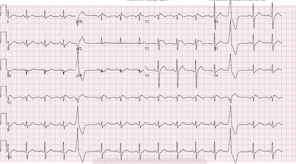 A 56-year-old male, with a history of hypertension, diabetes, and dyslipidemia, presented with chest pain, fever, and abdominal pain associated with diarrhea, one day post colonoscopy, for which an electrocardiogram (ECG) was done. On further review of history, the patient reported a syncopal episode 2 monthprior. Additionally, he reports a brother who died of sudden cardiac death (SCD) at the age 50.