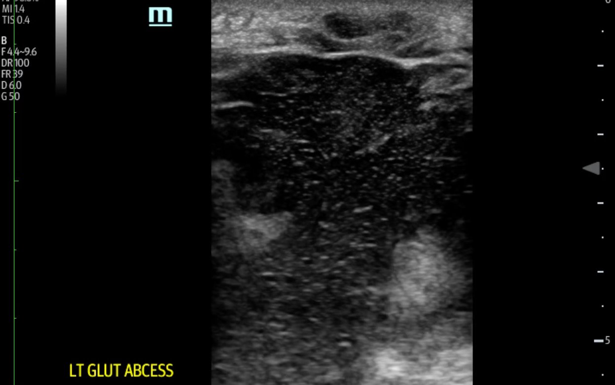 Abscess, ultrasound, POCUS, soft tissue, buttock.