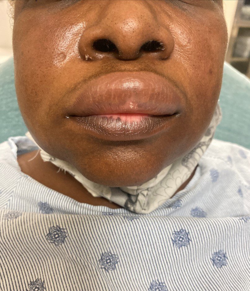 This is a case report of a 55-year-old woman with a past medical history of hypertension who presented to the emergency department with upper lip and cheek swelling isolated to the right side of her face. She was on lisinopril for several years and had never had an episode of swelling in the past. Her vital signs were stable. However, on reassessment, the patient’s right sided swelling progressed to the entire upper lip and she complained of swelling in her submandibular space. Although no swelling was appreciated to the submandibular space on physical exam, and the patient still did not have any signs or symptoms of respiratory distress, the decision was made to use a fiberoptic laryngoscope to evaluate her airway. Fiberoptic laryngoscope showed noticeable laryngeal edema which did not improve after treatment, and the patient was admitted to the medical intensive care unit for close airway observation. This case highlights the use of fiberoptic laryngoscope by emergency physicians in the evaluation of patients with relatively benign appearing angioedema.