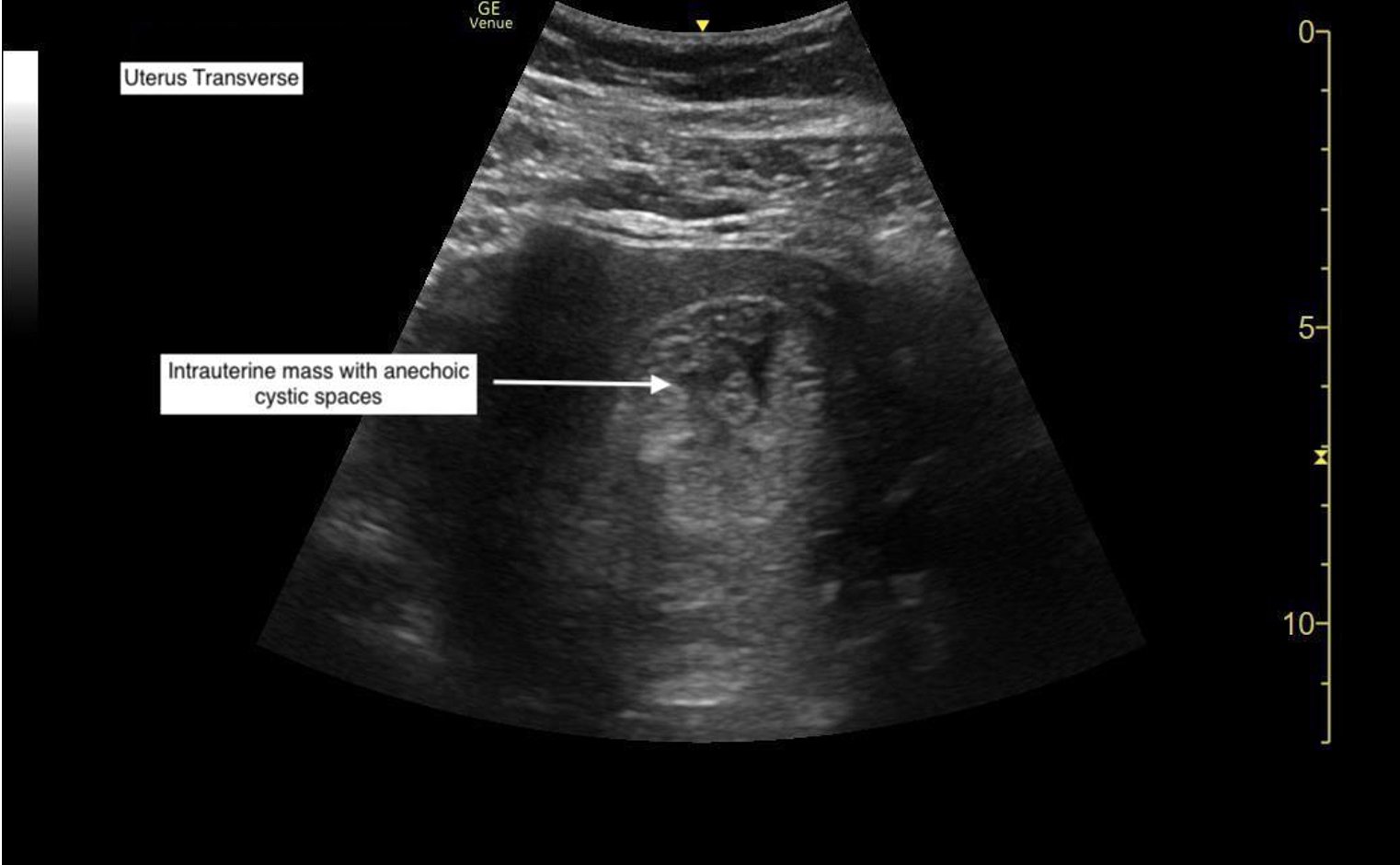 Molar pregnancy, gestational trophoblastic disease, hydatidiform mole, point of care ultrasound.
