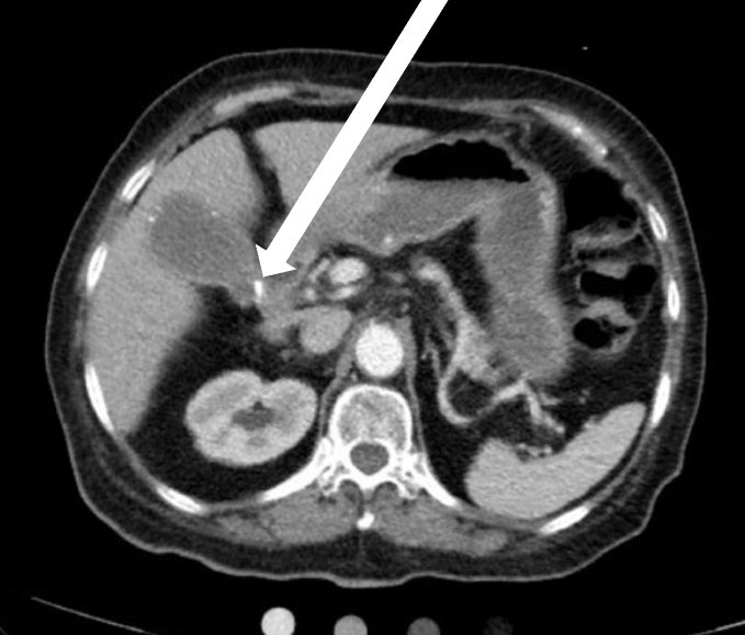A 75-year-old female presented for evaluation of elevated liver function tests (LFTs). Upon arrival, she had no acute complaints with unremarkable vital signs, aside from elevated blood pressure of 155/79 mmHg. Review of LFTs demonstrated elevation of total bilirubin, aspartate aminotransferase (AST), alanine aminotransferase (ALT), and alkaline phosphatase (ALP). Physical examination and review of systems were unremarkable. POCUS revealed common bile duct dilatation with cholelithiasis and sludge. While these findings may be confused with a WES sign, POCUS also revealed a hyperechoic gallbladder wall (GBW) with shadowing and irregular clumps of echo. The hyperechoic GBW with irregular shadowing heightened the suspicion for PGB. Computed tomography scan confirmed the presence of PGB. The patient had a stent placed near the common hepatic duct stricture and was advised to return for cholecystectomy. She was readmitted three months later due to bacteremia, likely caused by gallbladder obstruction in the setting of gallbladder cancer.
