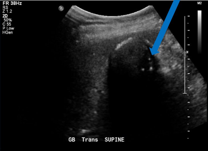 Point-of-care ultrasound, ultrasound, porcelain gallbladder, WES sign, wall-echo-shadow sign.