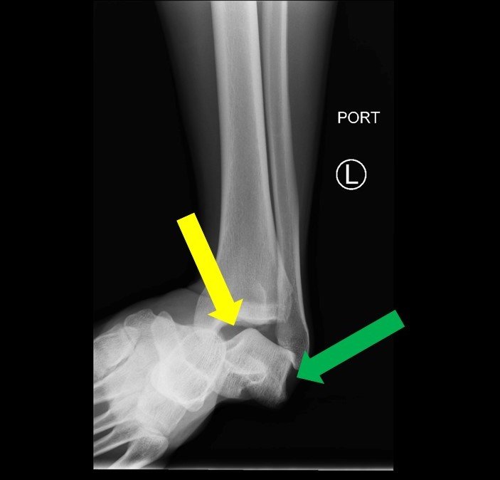 Subtalar dislocation, ankle dislocation, bicycle accident, x-ray.