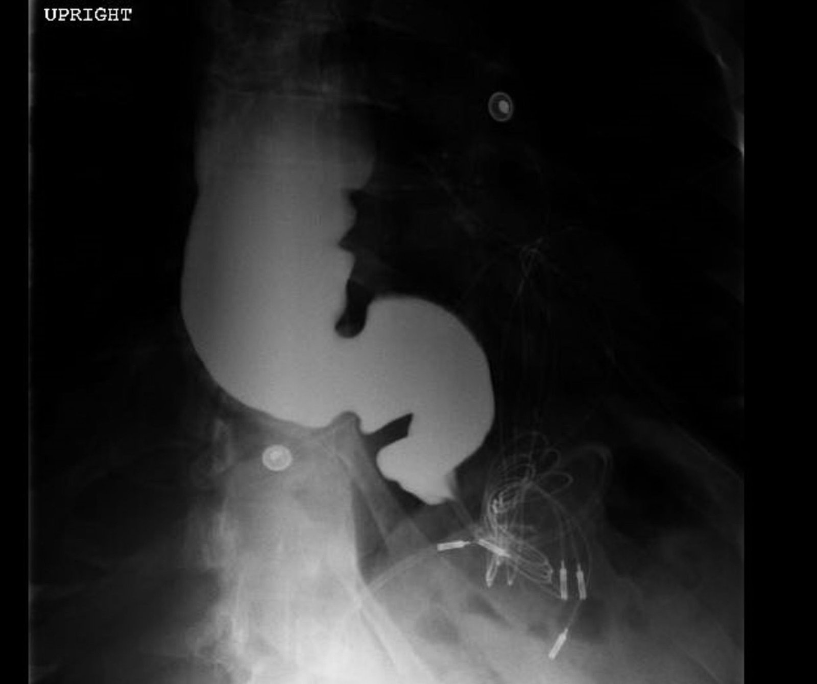 Achalasia, widened mediastinum, acute dysphagia, barium esophagram, lower esophageal sphincter, esophageal dysmotility, aspiration, gastroenterology.