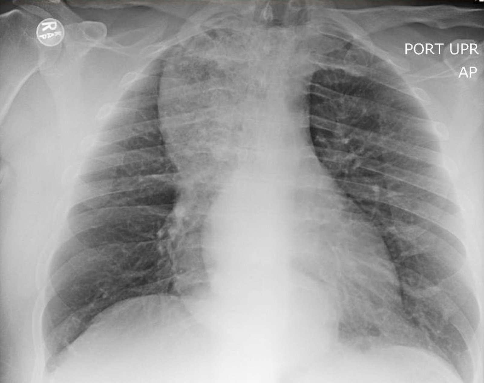 A 32-year-old male smoker with a BMI of 38.1 kg/m2, history of esophageal stricture, gastroesophageal reflux disease (GERD), and years of intermittent dry cough presented with three weeks of exacerbated, persistent cough worse in the morning and after eating. He denied fever, constitutional symptoms, dysphagia, or vomiting. He presented to the emergency department following an abnormal outpatient chest X-ray. Bilateral expiratory wheezing was noted on exam.