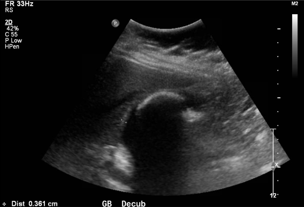 - Raptopoulos V, D’orsi C, Smith E, Reuter K, Moss L, Kleinman P. Dynamic cholecystosonography of the contracted gallbladder: the double-arc-shadow sign. AJR Am J Roentgenol. 1982;138(2):275-278. doi: 10.2214/ajr.138.2.275